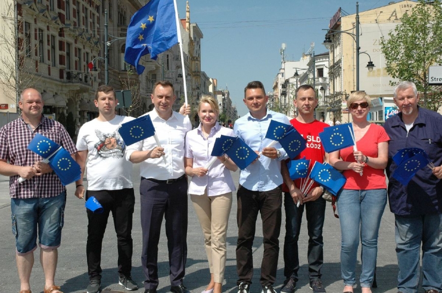 Politycy i działacze łódzkiego SLD nie zapomnieli o Dniu Unii Europejskiej. Wspólnie z przedstawicielami Nowoczestnej rozdawali mieszkańcom Łodzi flagi unijne.